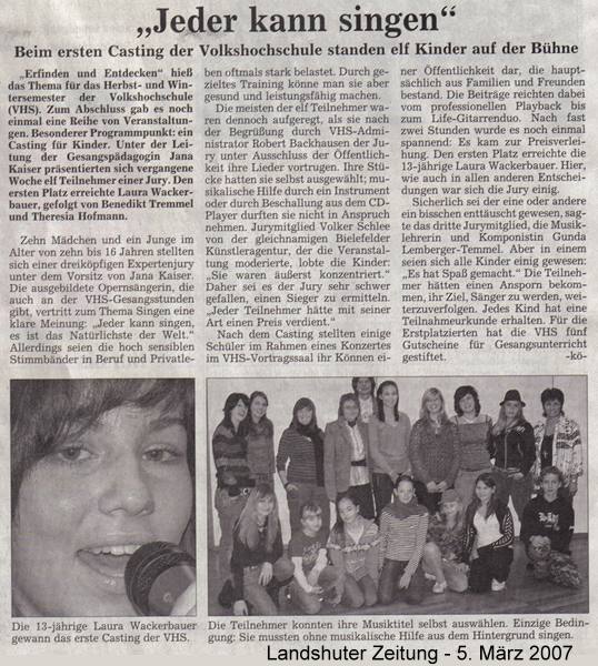 Landshuter Zeitung - Sehr freundliche, ausführliche und objektive Berichterstattung am 5. Februar 2007 - www.landshuter-zeitung.de (Zum Artikel einfach des rechte Foto klicken)