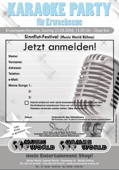 Es ist wieder mal so weit. Die zum Kult gewordene Karaoke Party auf dem Sinnflutfestival wird auch dieses Jahr wieder eingeläutet.